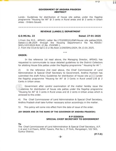 Under the existing G.O. No. 23, applicants from rural areas will be allotted three cents of land, while those from urban areas will receive two cents, along with housing assistance.