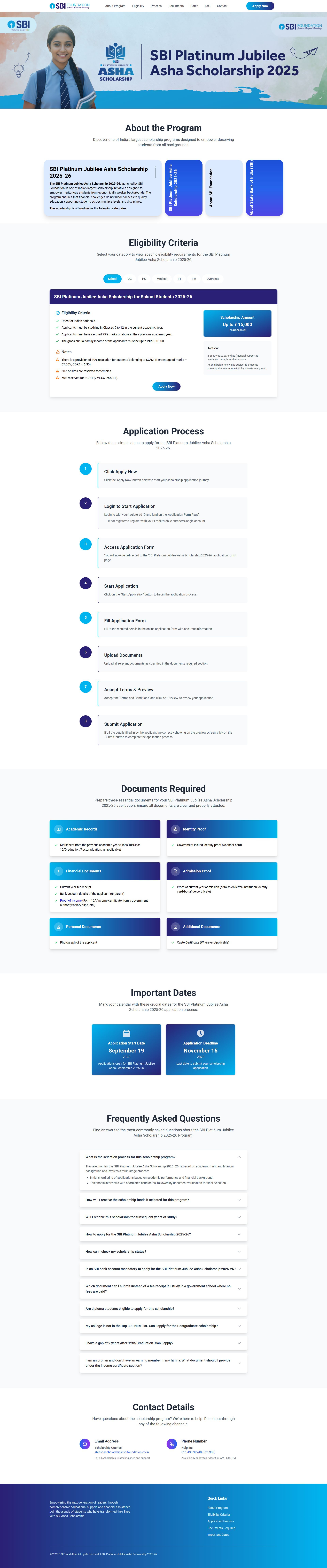 | Scholarship Name | SBI Platinum Jubilee Asha Scholarship 2025 |