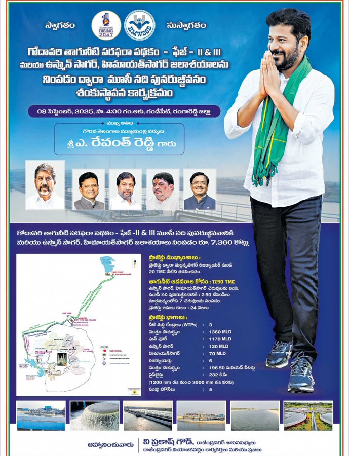 Speaking at the event, the Chief Minister emphasized that Hyderabad’s rapid urbanization and population growth demand sustainable water solutions. He assured that with the completion of this project, the drinking water needs of Hyderabad will be secured for the next 50 years.