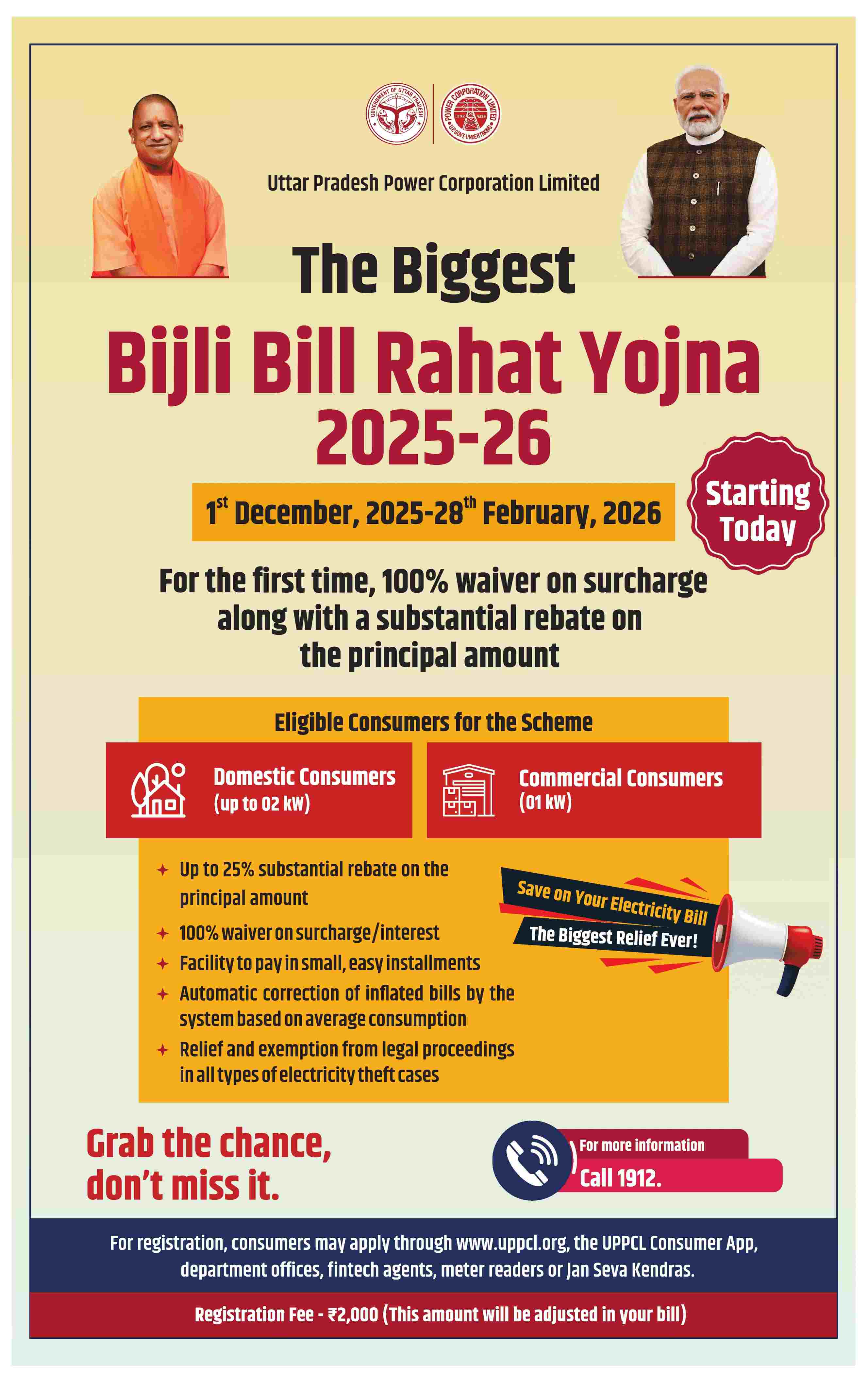 UPPCL has appealed to eligible consumers to take advantage of the scheme, calling it the “biggest electricity bill relief ever”